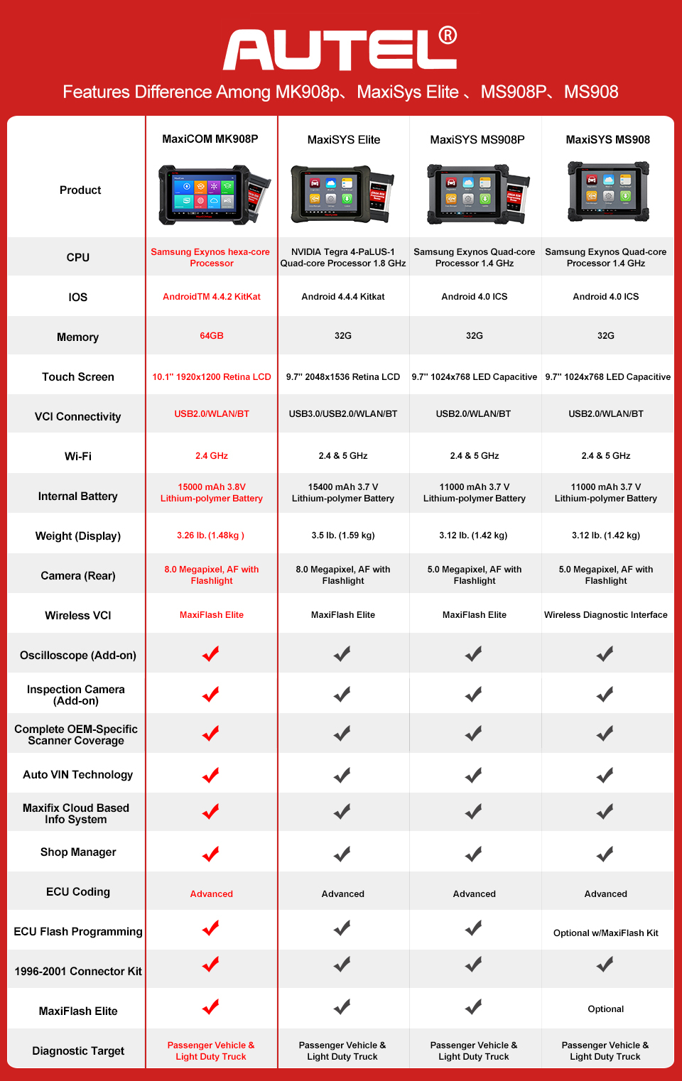 Differences Between Autel MK908P,MaxiSYS Elite,MaxiSYS MS908P,MaxiSYS MS908