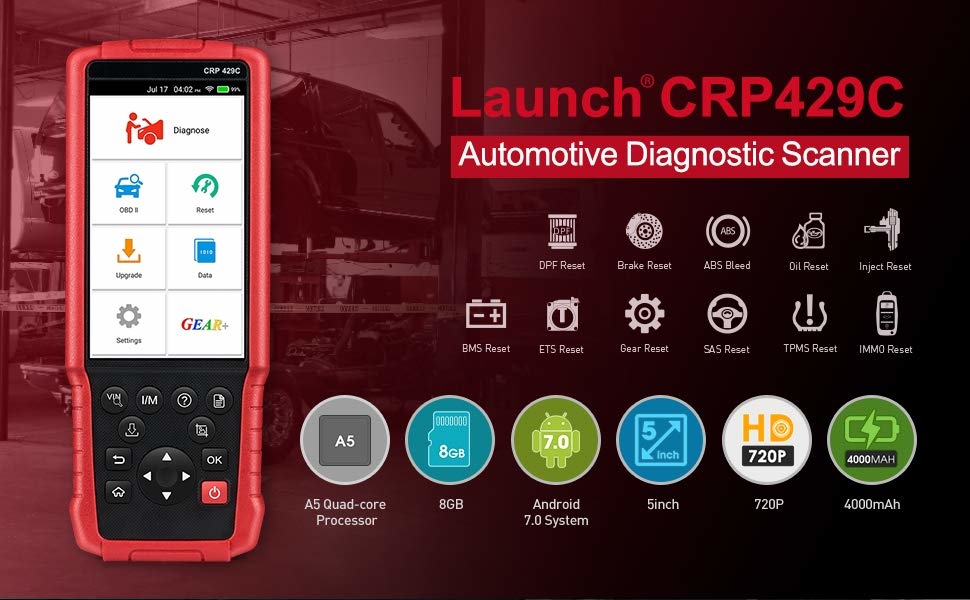4. EASY TO USE: CRP429c is one 5inch touchscreen obd2 scanner, equipped with android system and A5 quad-core processor, 8GB ROM, high-speed diagnostic and feedback, it is like our mobile phone, very easy to use for every person.