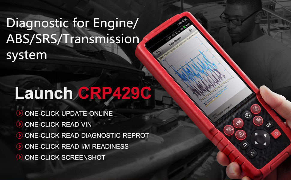 1. OBD2 FULL FUNCTION+11 SPECIAL FUNCTIONS: Launch CRP429C is one professional diagnostic tool with powerful function, support obd2 full function such as read and clear DTCs for Engine/ABS/SRS/Transmission, graph live data of all system, evap system test. Compared with general obd2 scanner, CRP429C add oil reset, SAS reset,electronic parking brake reset,battery maintenance, ABS bleeding, electronic throttle position reset, DPF regeneration, injector coding, TPMS reset, IMMO matching, gear learn.