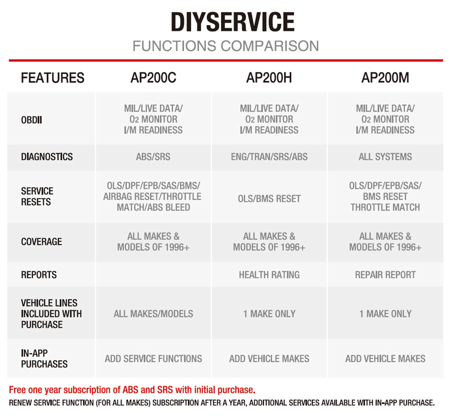 • Download free software for your vehicle (Renew brand subscription after a year, additional brand lines are available with in-app purchase)