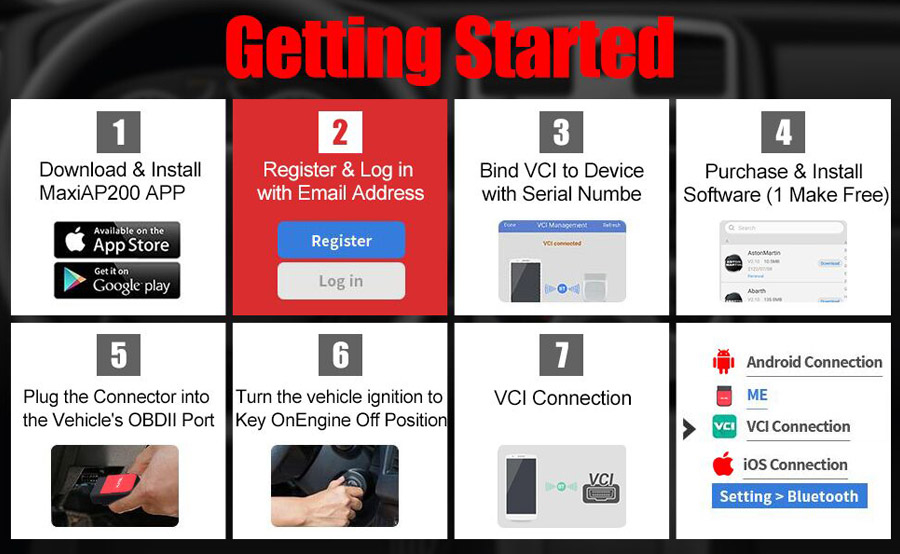 The MaxiAP AP200H is used to connect to the vehicle's OBDII port and connect with an Android or iOS device for intensive health reports. By clicking"MALL" function button, you can access app built-in mall quickly and purchase the vehicle of your choice. Follow the instructions to download one free purchase the vehicle of your choice. Click“Buy it now”and enjoy a high-quality product with confidence.